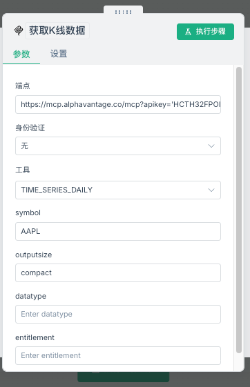 端点URL:https://mcp.alphavantage.co/mcp?apikey='YOUR_API_KEY'