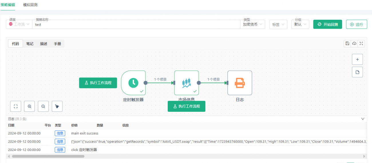 工作流是一种可视化编程工具,通过拖拽和连接不同的功能节点来构建自动化流程。在量化交易中,它可以帮助用户更方便地搭建交易系统。