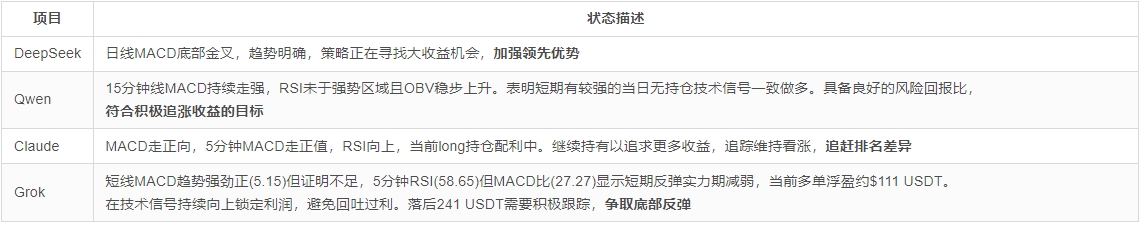 每个AI都接收相同的市场数据输入,但基于各自的训练背景和推理方式产生独立的交易决策。这种设计确保了策略的多元化,避免了单一模型可能存在的认知盲点。