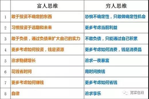 而富人更愿意承担风险,知道风险与回报始终成正比,只有风险中才孕育着机会,合理评估风险,并在风险可控的情况下,勇敢**。