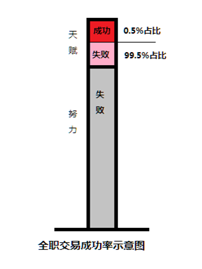 当你做足99%的努力之后,你才有资格去跟别人拼天赋,很多人连99%的努力都没做到,根本还上升不到跟别人拼天赋的层面,这类人自然是不可能成功的。假设整个交易行业有0.5%能够最终成功,那么,在99%的人努力之后,剩下的那1%人当中,有一半人能够成功,另外一半人会失败。换句话说,交易这个行业,并不是你努力了,就一定会成功。这个行业成功的条件非常苛刻,在你决定要踏入交易世界的大门之前,你必须要有清楚的认识和准备。