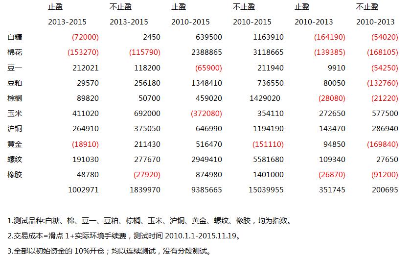 以上的数据,说明止损并不是一门艺术,并且,通常按照系统的出场标准(即止盈标准)来止损往往是最理想的,这个特点也和不要设置止盈是统一的,基于这个理念,我们再谈止盈。