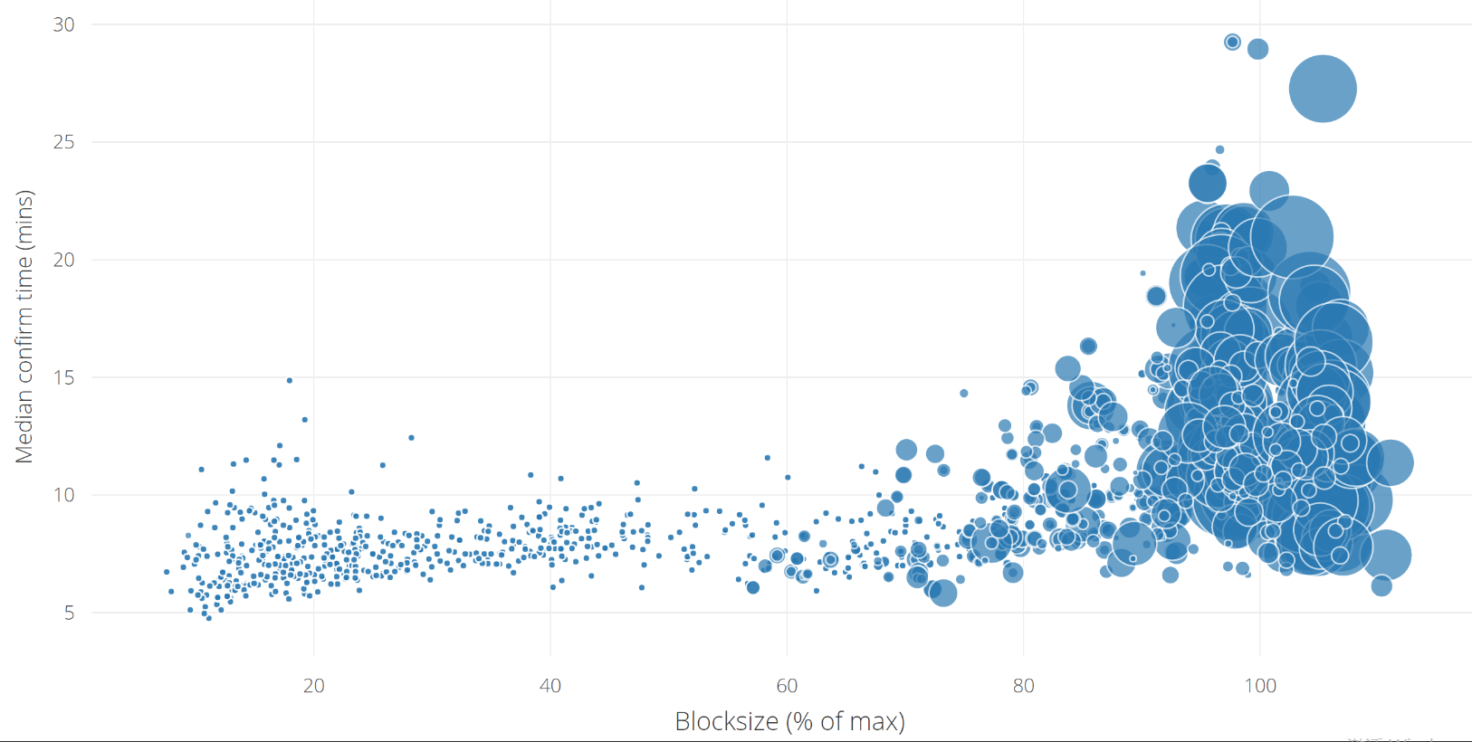 Bitcoin Median Confirmation Time VS Bloacksize