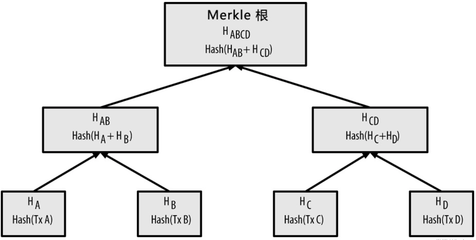 Merkle树是一种哈希二叉树,它可以用来进行快速查找和检验大规模数据完整性。对于比特币网络来说,使用Merkle树来存储交易信息的目的是为了高效的查找和校验某笔交易的信息是否存在,当N个数据元素经过加密(使用两次SHA256算法,也称double-SHA256),至多计算 2log2(N)2log2(N) 次就能检查出任意某元素是否在树中