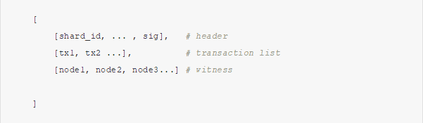 period_start_prevhash 前一区块,即区块 PERIOD_LENGTH * expected_period_number - 1 的区块哈希(这其实就是希望被包含进的周期起始区块之前的最后一个区块的哈希)。分片中使用区块数据的操作码(例如NUMBER和DIFFICULTY)会使用这个区块的数据,除了COINBASE操作码,它会使用分片的coinbase;