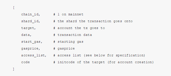 交易的格式现在将变为(注意这里包含了 账户抽象 和 读/写列表 ):