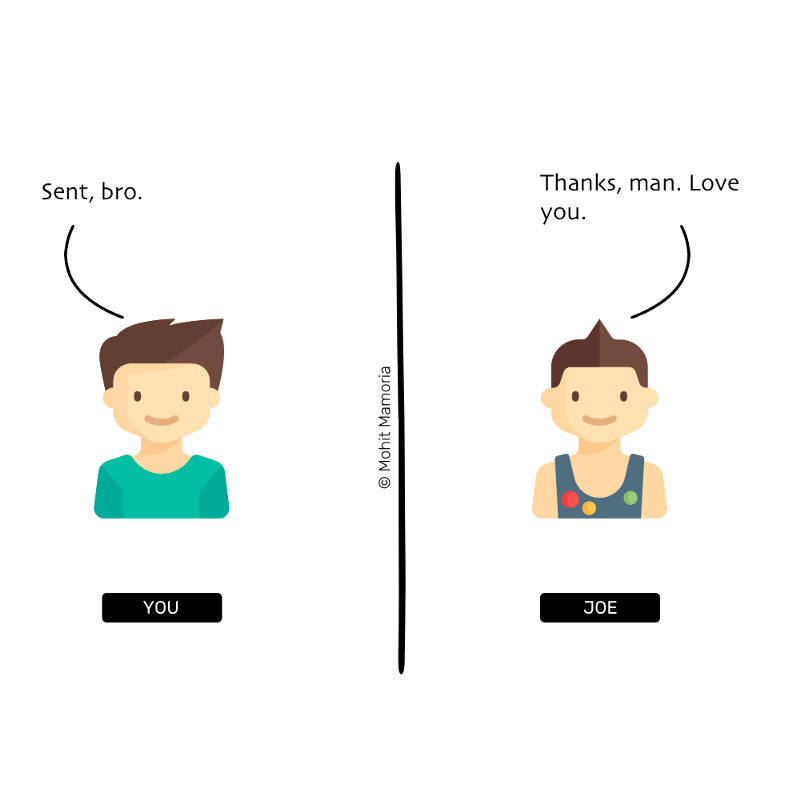 Joe是你最好的朋友。他出国旅游后的第五天给你打了个电话:“兄弟,我需要点钱,出国之后把身上的钱都花完了。”