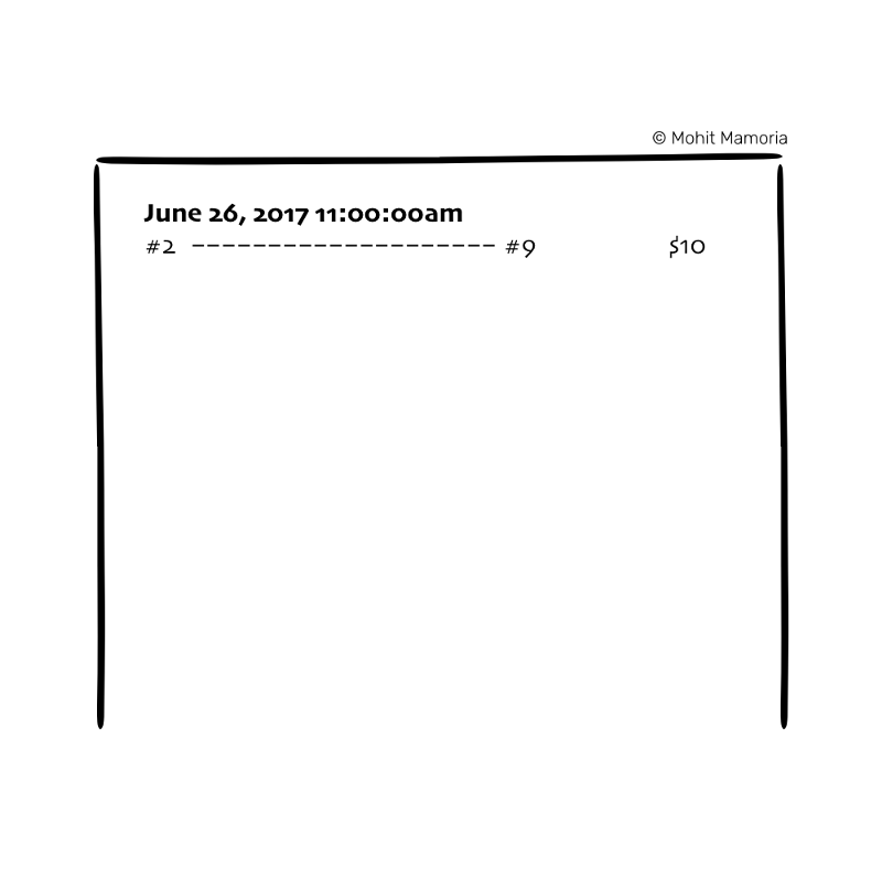 然后每个人都检查确认2号是不是有10美元及以上的余额能够转给9。如2号余额足够,那么大家都在空白纸上记录下这笔交易。