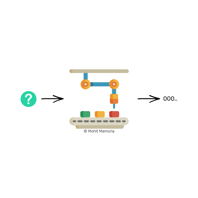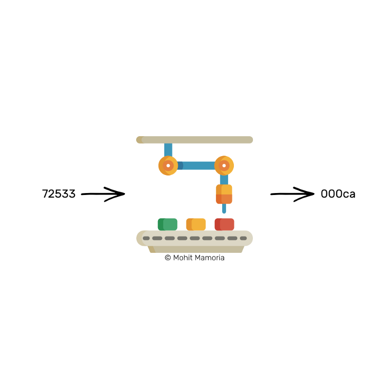 如果我给你72533这个数字,然后问你:“这个数字输入魔法机器后会不会输出以3个零为开头的结果?”这个问题就简单到简直在侮辱我们的智商了。