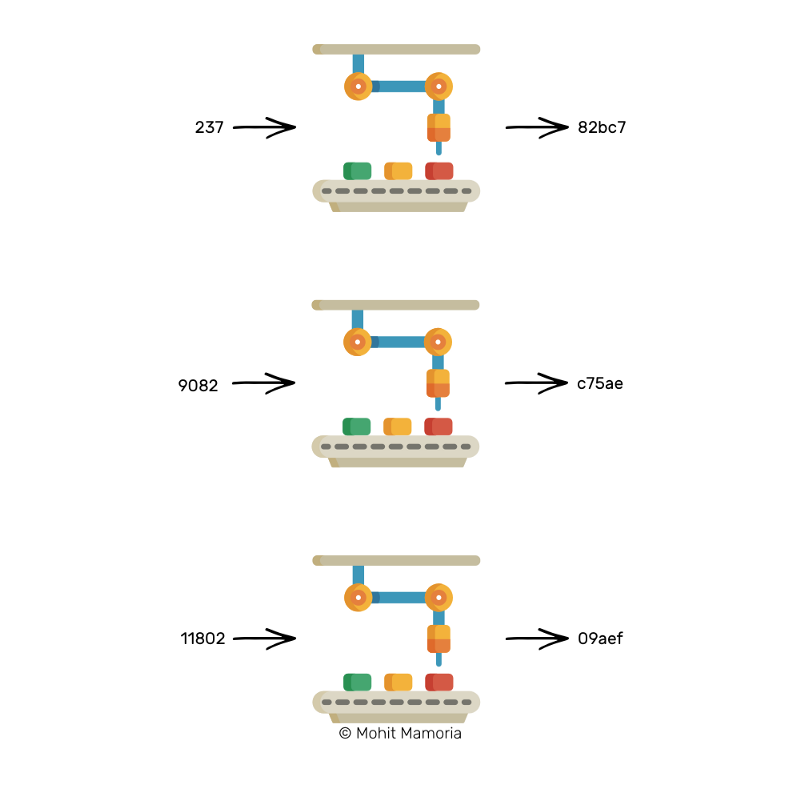 【术语解析】这个机器实际叫作“哈希函数”,但是今天我们不讨论技术。所以我们暂且称它为“魔法机器”。