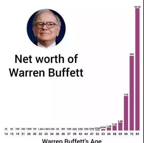 复利最大的特点,就是后期呈现指数化,下图是巴菲特的财产变化。