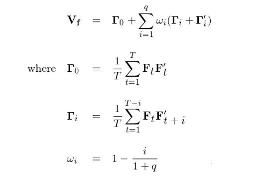 可见,为了得到 V,对于 V_f 的求解至关重要。Newey-West 调整就是为了更准确的计算出 V_f。