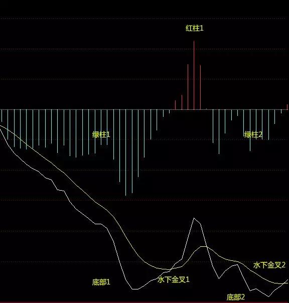 此图中大家一看就知道是水下金叉的时候,不过这是走出来之后的图形,当时的水下金叉不一定是买点,可能金叉之后再死叉,因为当时还是空头。