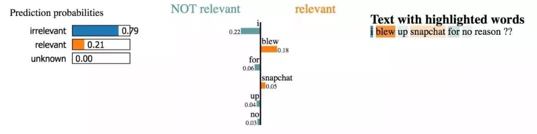 LIME是Github上的一个开源软件包,它允许用户通过观察输入的扰动(比如在我们的例子中,从句中移除单词)来分析一个特定分类器的预测结果是如何变化的。