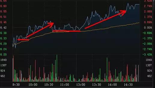 当股价横盘平台区间不断向上移动,分时的量能持续放大,说明市场做多意愿强烈。