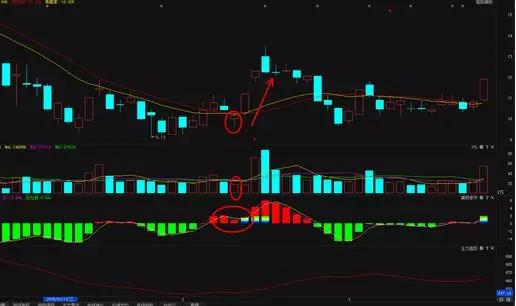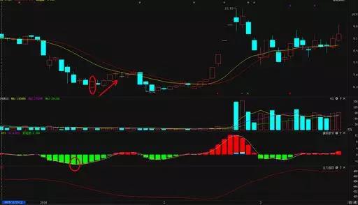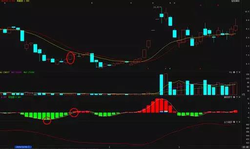 如下面的分时图和K线走势,股价平开后在均价线下方运行,下跌时量能缩小,底部出现明显放量后反向拉升,冲破破均价线,量能放大明显,同时K线在智能辅助线下方运行,捕捞季节出现金叉买入信号,随后股价出现小幅上升。