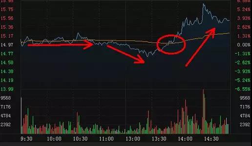 当个股运行到相对低位时,股价出现迅速上涨并突破均价线,上涨分时量能出现明显放大,说明市场做多意愿强烈。