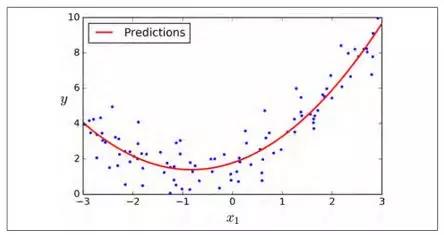 如果你的数据实际上比简单的直线更复杂呢? 令人惊讶的是,你依然可以使用线性模型来拟合非线性数据。 一个简单的方法是对每个特征进行加权后作为新的特征,然后训练一个线性模型在这个扩展的特征集。 这种方法称为多项式回归。