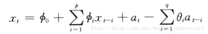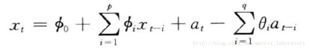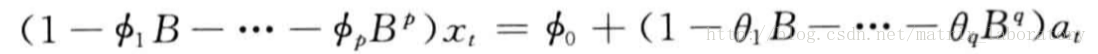 xt=ϕ0+ϕ1xt−1+at−θ1at−1xt=ϕ0+ϕ1xt−1+at−θ1at−1 or (1−ϕ1B)xt=ϕ0+(1−θ1B)at(1−ϕ1B)xt=ϕ0+(1−θ1B)at