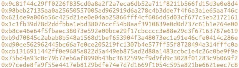 首先我们从理解一个私钥开始。以太坊通过公钥加密进行授权。具体来说,用椭圆曲线数字加密算法,通过 secp256k1 标准生成公钥。除了有一些限制外,私钥只是一个随机的 256 位的数。例如: