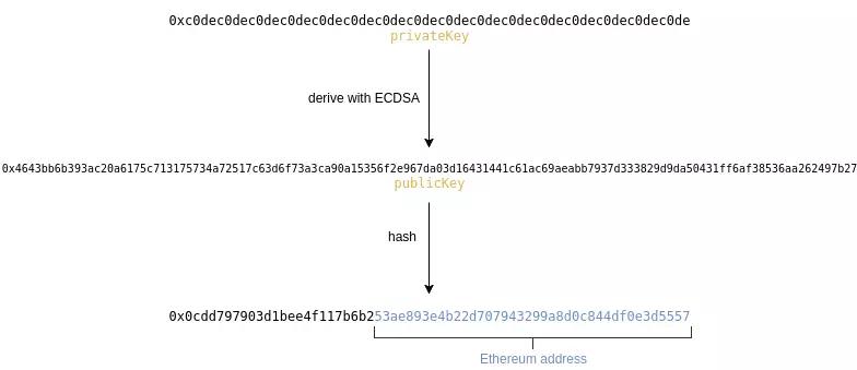 与私钥相关联的以太坊地址是用相应公钥进行 SHA3-256 (Keccak) 哈希运算后得到的后 160 位。