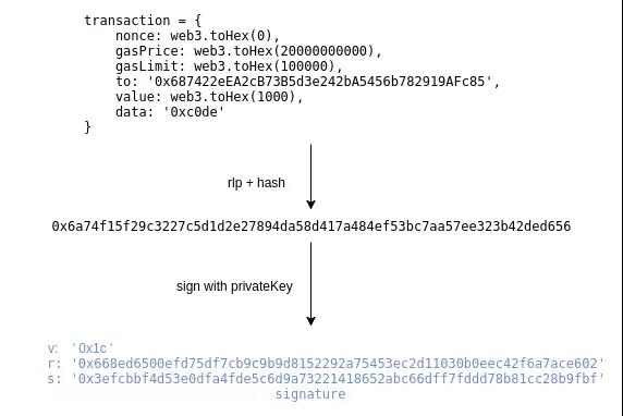注意, from 地址并没有指定,在私钥签署后,它会从签名中提取。签署交易: