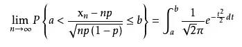 该定理表明,正态分布是二项分布的极限分布,当数充分大时,我们可以利用上式来计算二项分布的概率。