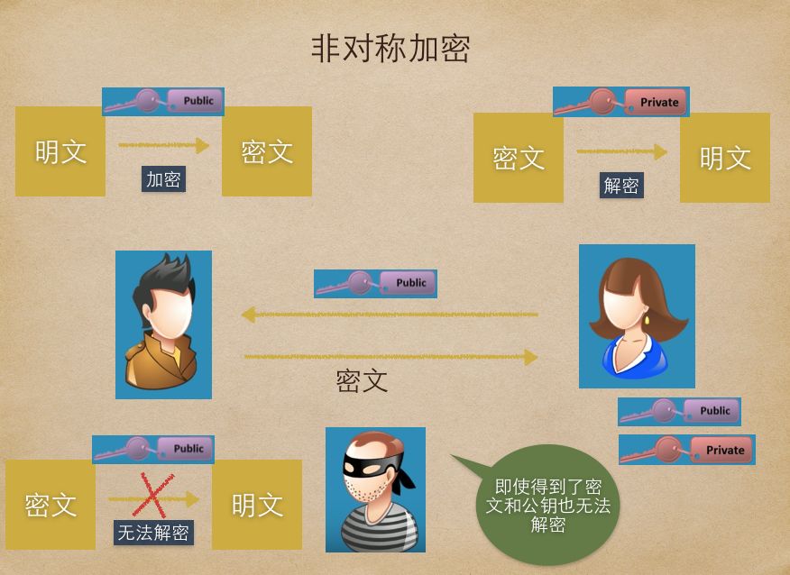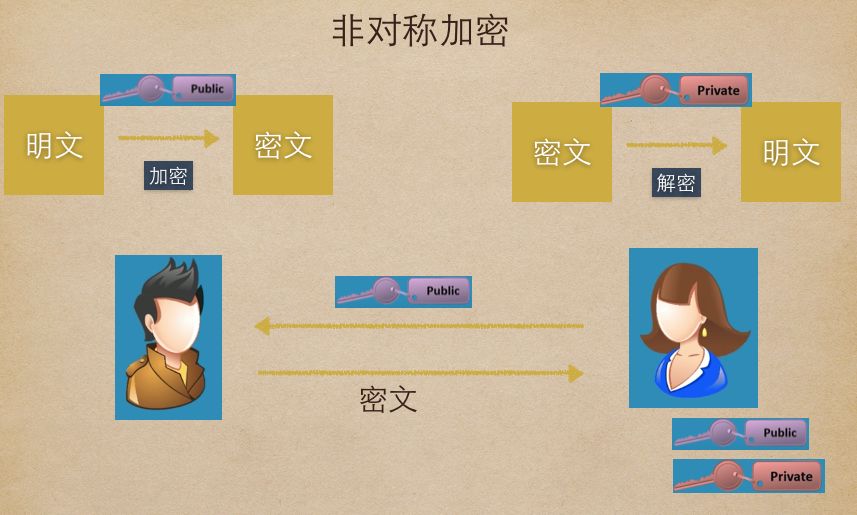 在非对称加密中有公钥和私钥两个,公钥用来加密,私钥用来解密,公钥可以发给任意的人。