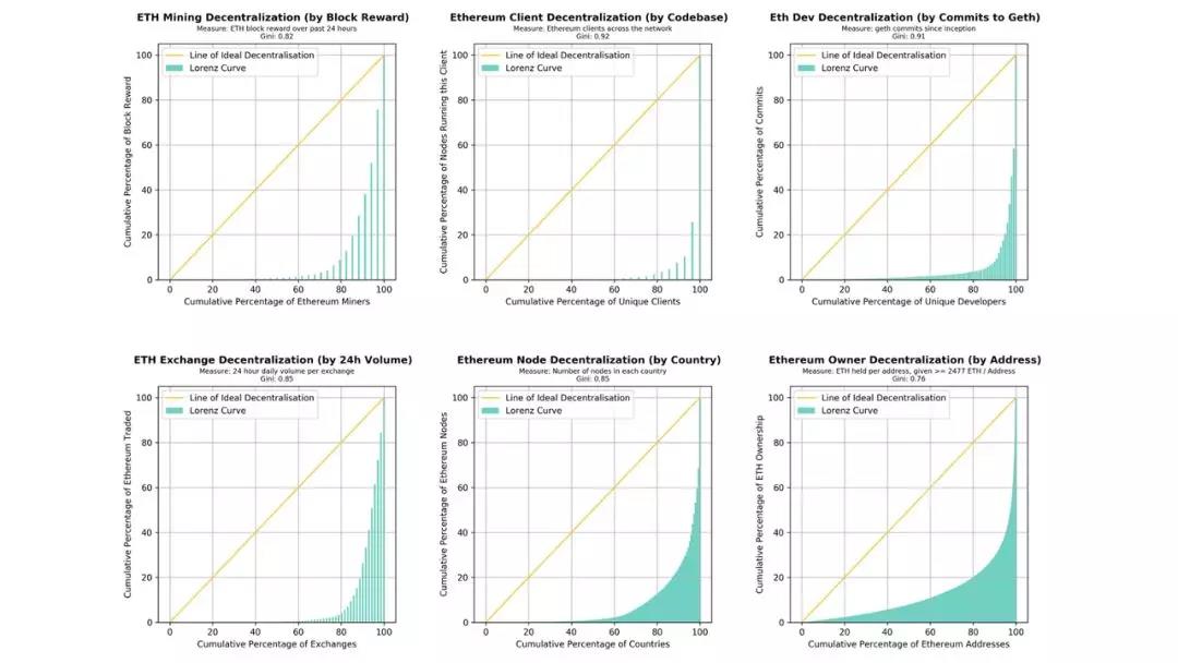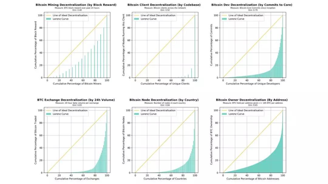 为了更好理解这个定义,我们首先交代有关基尼系数和洛伦兹曲线的相关概念的部分背景,然后根据这些衡量标准,展示一些图表和计算结果来看一看整个加密生态系统的去中心化现状。我们接着会讨论衡量去中心化的概念,作为对比特币和以太坊基本子系统的综合衡量方法。我们在结尾部分将最小中本聪系数定义为系统级去中心化的提议衡量方法,并且讨论改善这个系数的方式。