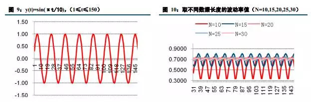 一般而言,传统的跨品种套利策略以协整为前提,在此基础上通过考察残差序列的均值回复特性,来制定相应多空套利策略;其重点在于开平仓信号的确定,而开平仓位置的确认又往往挂钩于波动率值,因此,此类问题的关键在于波动率的取值。而波动率 (如:历史波动率 )的值除了受历史时间序列影响外,还与所取的数据长度N休戚相关。对于给定的时间序列,当N取不同长度(如下图,N=10、15、20、25、30)时,随着时间的推移,波动率值表现出不同的性态,只有当N取作时间序列y(t)的周期(即下图中N=20)时,波动率值才不会随着时间的演进而出现大幅波动。