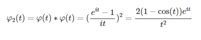 考虑X1X1和X2X2相互**,它们的和用S2S2表示,则随机变量S2S2的特征函数为