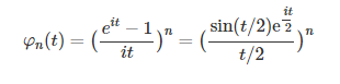 课本如《概率论与数理统计教程》 采用卷积的方法求分布函数,这种方法实行起来比较繁琐,也不利于后续编程,下面考虑用特征函数的方法求。我们知道标准均匀分布的特征函数