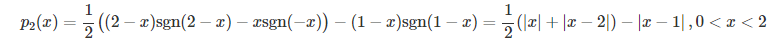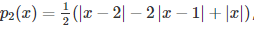 fun_p2_1 <- function(x) { 1 / 2 * (abs(x - 2) - 2 * abs(x - 1) + abs(x)) }