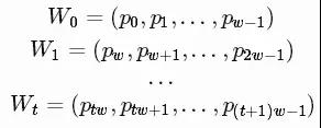 股票价格是长度为NN,定义为p0,p1,...,pN-1,其中pi是第i天的收盘价,0≤i<N。 我们有一个大小固定的移动窗口w(后面我们将其称为input_size),每次我们将窗口向右移动w个单位,以使所有移动窗口中的数据之间没有重叠。