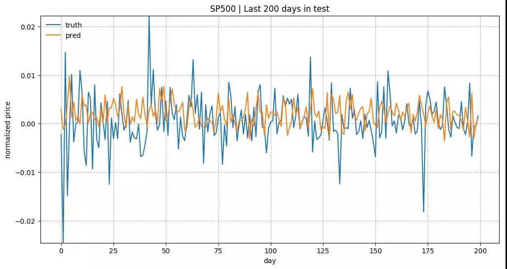 总的来说预测股价并不是一件容易的事情。 特别是在正则化后,价格趋势看起来非常嘈杂。