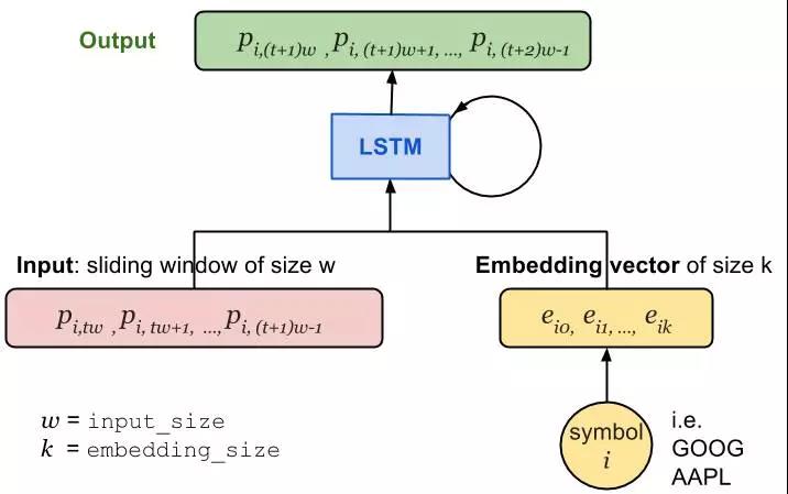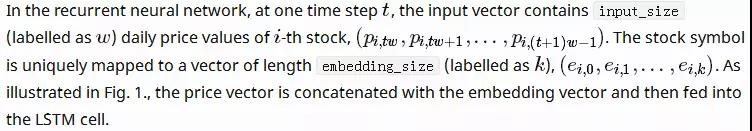 另一种选择是将嵌入向量与LSTM单元的最后状态连接,并在输出层中学习新的权重W和偏差b。 但是这样的话,LSTM单元就不能分辨出一只股票的价格,它的发挥就会受到很大的抑制。 于是我们决定采用前一种方法。