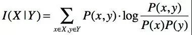 互信息是用来量化两个变量X,Y相关性的量。它的定义为: