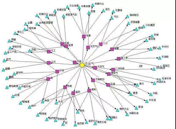 对于关键词网络模块,提供了两种形式的调用,一是对于给定的关键词,生成完整的关键词网络图,二是对于只给出与关键词关联度最高的20只股票组合,他们分别是: