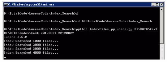 运行举例:python IndexFiles_pylucene.py D:\DATA\text D:\DATA\Index\text