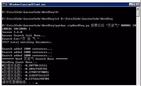 运行举例:python sigWordSeq.py 股票论坛 "物联网" 000001 20100601 20120820 1