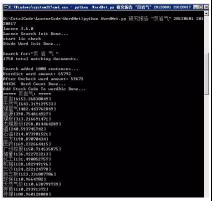 运行举例:python WordNet.py 研究报告 "页岩气" 20120601 20120817