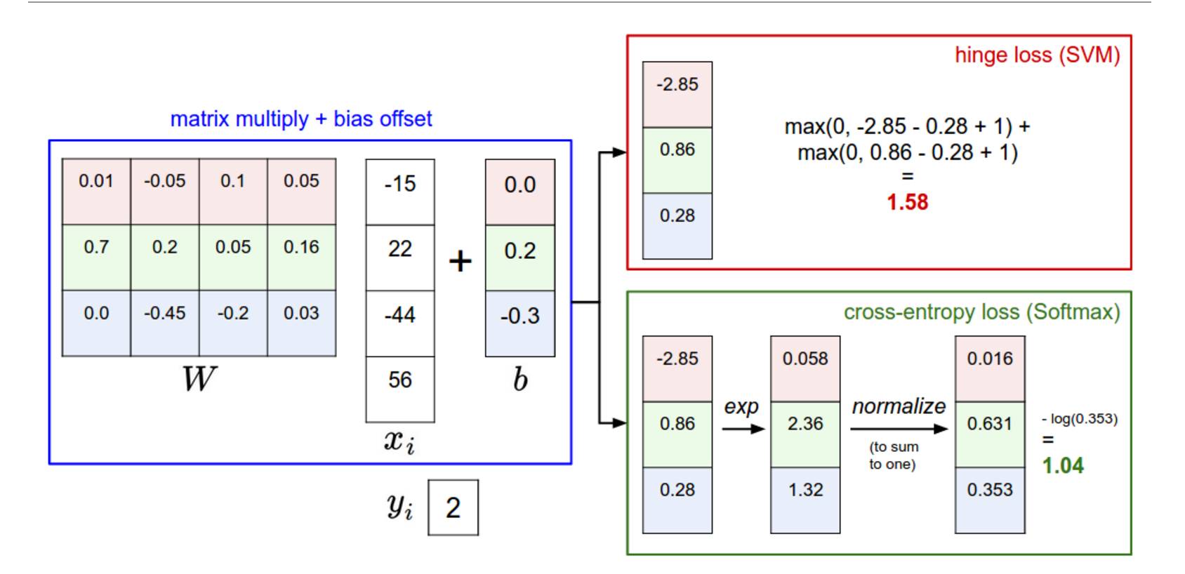 比如预测结果为[0.01, 0.01,0.9, 0.01….]的模型肯定比[0.1, 0.1, 0.6, 0.05,…..]要好(SVM的预测分值可以大于1,这里为了说明是“可能性”举得例子小于1)。Logistic Regression定义的最优跟SVM不一样,Logistic Regression先在线性模型的结果上套一个softmax函数,把结果压缩到[0,1]的范围内,表示概率,然后和真实结果计算交叉熵cross entropy,交叉熵越大,交叉熵损失函数越小越好。这里引入的损失函数(loss function/costfunction)实际上就是对”最好的”一种数学表达。比如SVM的损失函数就是