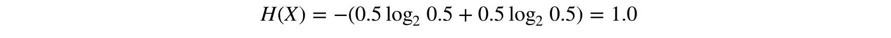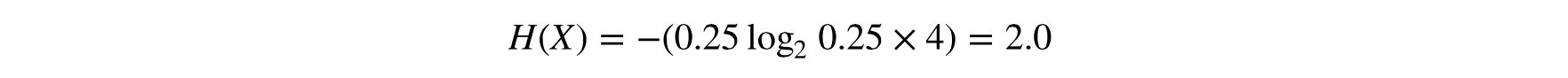 也就是说, 两个等概率的可能值, 正面和反面, 只需要一个比特。如果是两个硬币投掷一次事件发生后一般有四种可能: 正面正面, 正面反面, 反面反面, 反面正面, 每种可能的概率是0.25。其熵为: