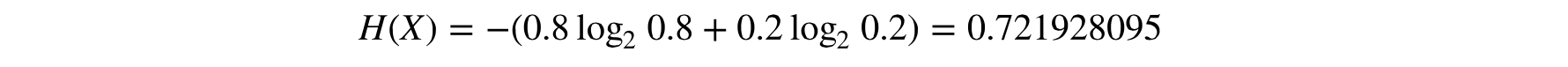如果硬币的两面相同, 那么表示其可能值的变量熵为0比特, 也就是说, 结果是确定的, 变量再也不会产生新信息量了。熵还可以用小数值表示。比如, 一个不正常的硬币, 其正反面的材质不同, 一边重一边轻。导致其投掷后正面朝上的概率0.8, 反面朝上概率0.2。那么其熵为: