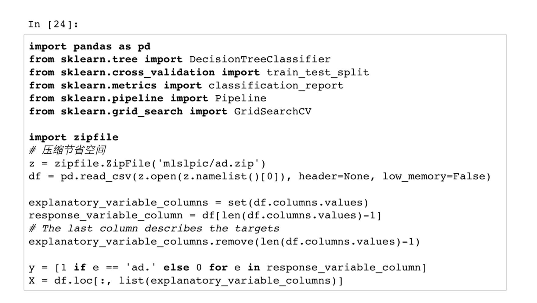 首先,我们读取数据文件,然后解释变量和响应变量分开。