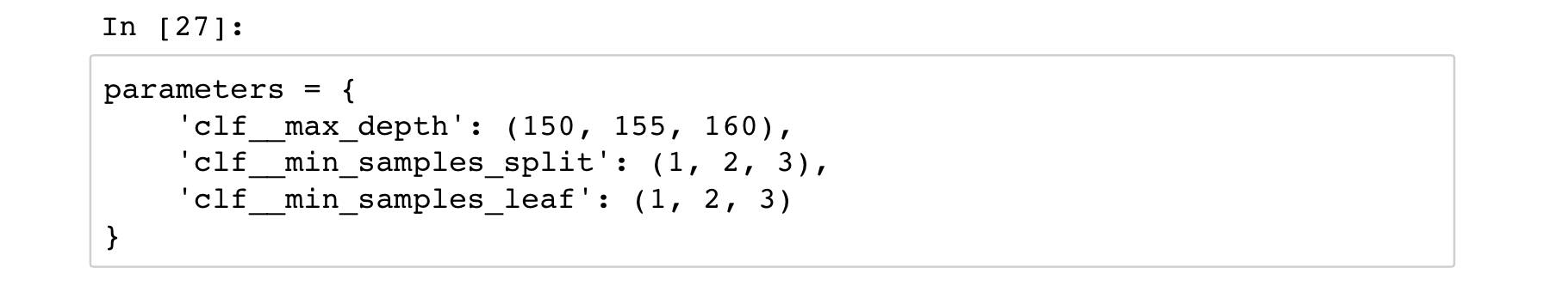 然后, 我们确定网格搜索的参数范围。最后将GridSearchCV的搜索目标scoring设置为f1。