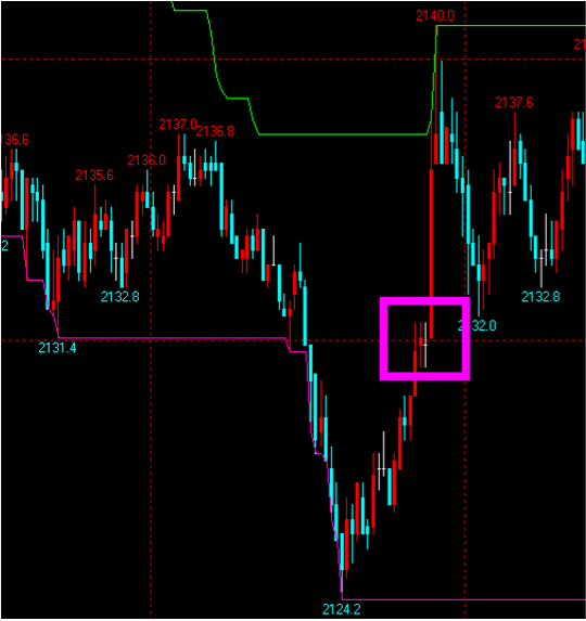 3.上图的第三类交易机会,完全否则了之前下跌的趋势,是完全的方向逆转, 结果会怎么样呢,如下图: