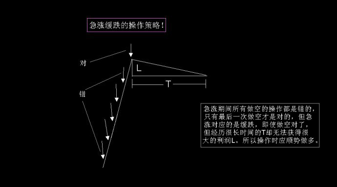 由于急速行情和缓速行情所对应的后续行情的速度有所不同,所以对应于急速行情和缓速行情的策略是不一样的。对于速度的了解,让我们知道了,不同行情下的操作策略应不同,而并非像传统理论所说的所有行情都要顺势而为。