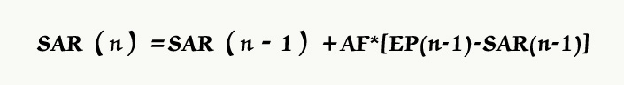 加速因子的初始值是0.02,即AF(T0)=0.02;若Tn-1,Tn周期都为上涨趋势时,当Tn周期的最高价>Tn-1周期的最高价,则AF(Tn)=AF(Tn-1)+0.02, 当Tn周期的最高价<=Tn-1周期的最高价,则AF(Tn)=AF(Tn-1),但加速因子AF最高不超过0.2;下降趋势时同理;另外,任何一次行情的转变,加速因子AF都必须重新由0.02起算。