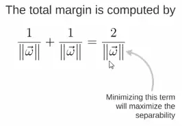 所以得到total margin的表达式如下,目标是最大化这个margin,就需要最小化分母,于是变成了一个优化问题: